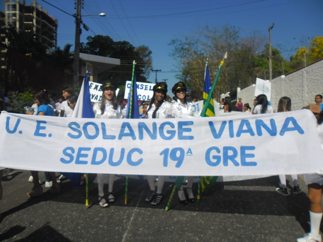 A Unidade Escolar Solange Viana, Promorar, foi para a Avenida Marechal Castelo Branco, no último dia 7 de setembro, com o tema: CIDADANIA, UM DIREITO DE TODOS - resgatando valores em busca da cidadania. Destacaram-se na Avenida os projetos que a escola oferece, a exemplo do Programa Mais Educação e suas atividades, os alunos medalhistas do Karatê e o Programa Ensino Médio Inovador.