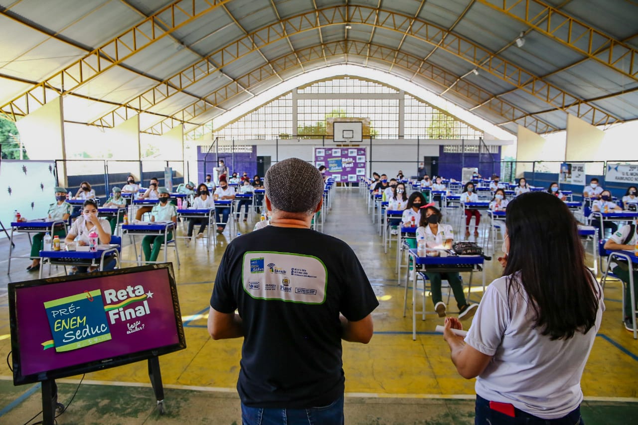 O Exame Nacional do Ensino Médio (ENEM) está se aproximando e as revisões para os alunos da rede estadual de ensino têm se intensificado. Obedecendo o distanciamento social e todas as regras estabelecidas pelos órgãos de saúde por causa da pandemia do coronários, a Secretaria de Estado da Educação (Seduc) tem realizado uma série de revisões para garantir a preparação dos alunos.